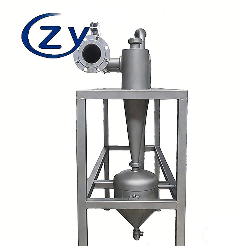 Máy tách cát nàysử dụngnguyên lý phân ly ly tâm đểtách và thải racác hạt cát vàcác tạp chất khác nhau. Ống cấp liệu lệch tâm của nóhướngbột nhão để tạo ra dòng chảy xoắn ốc xuống dưới; dòng chảychuyển hướng lên trêntại phần hình nón trước khixả cuối cùng.
